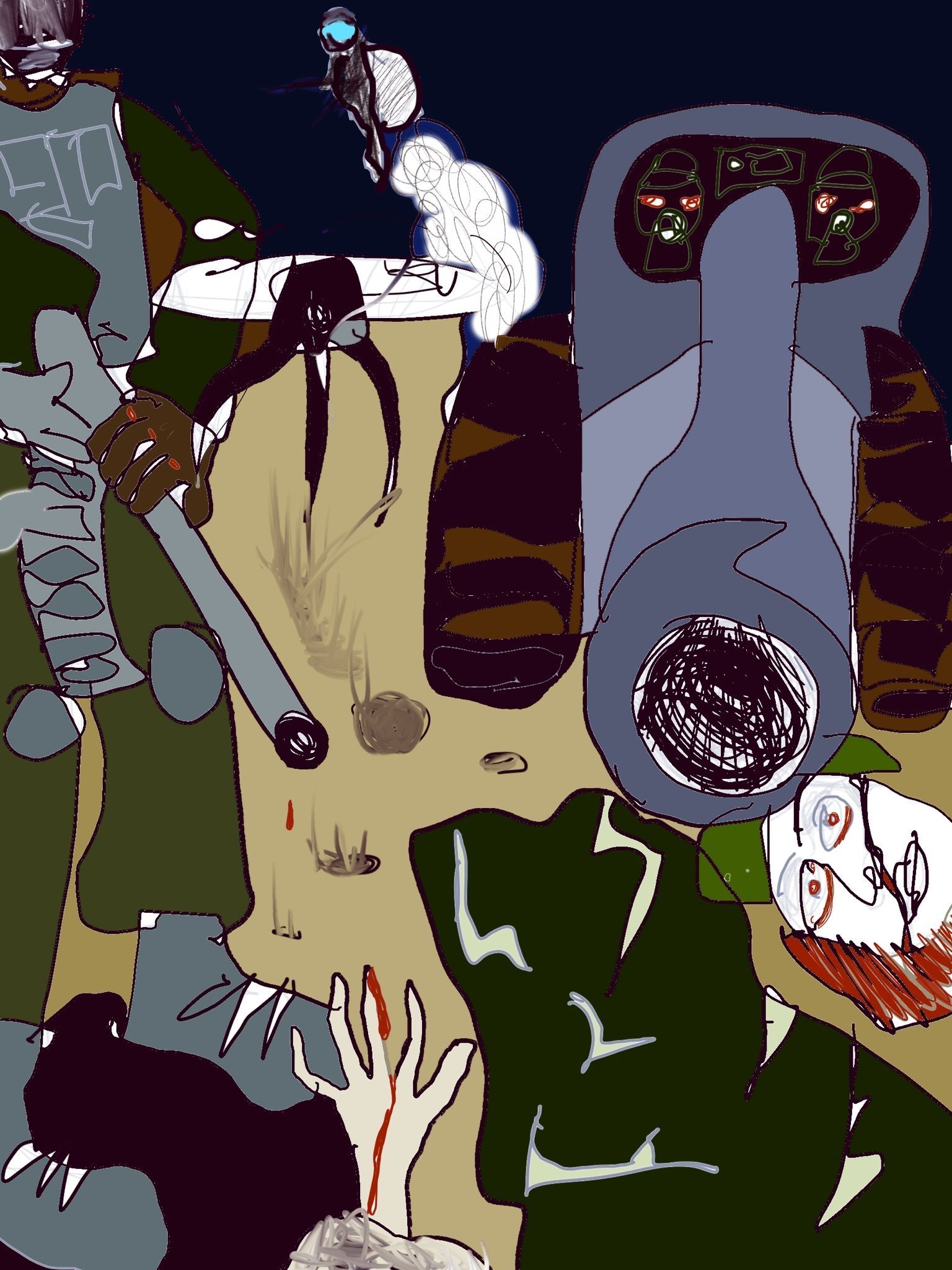 In der Werkschau von Heidulf Gerngross positionieren sich u.a. am Computer gezeichnete Bilder von Vinzenz Grausam, seinem jüngsten Sohn. Spektakuläre Szenen aus einer Welt von neuen Figuren und Formen.